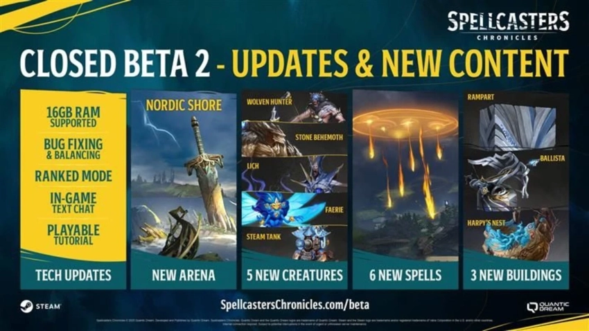 Также уделили внимание и контенту. Ко второму закрытому тесту в игре стал доступен новый регион, пять новых существ и шесть заклинаний. Закрытая бета доступна в Европе, Северной Америке и Азии, но в некоторых регионах может быть повышенная задержка. Русского языка в игре нет.