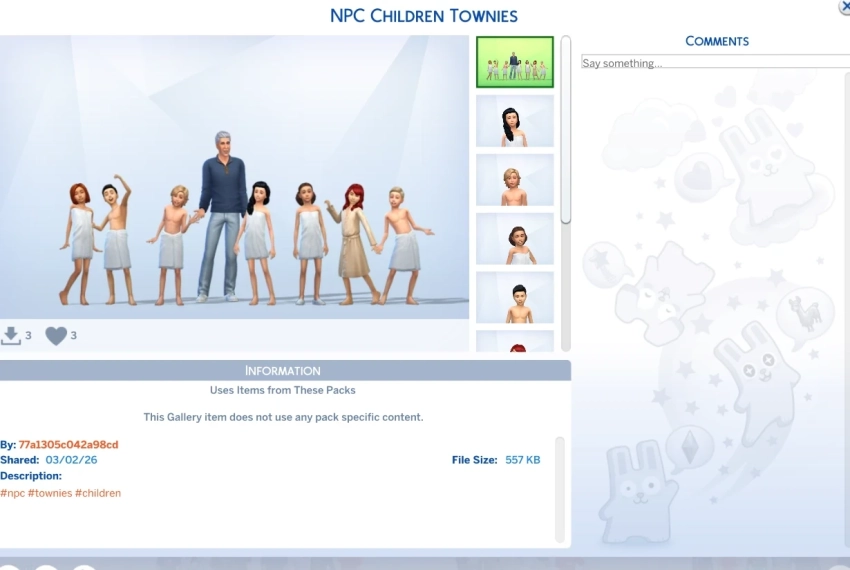 Сообщество The Sims обсуждает семейный пресет NPC Children Townies, который был загружен в галерею четвёртой части 2 марта и моментально привлёк внимание аудитории. Одетый седовласый мужчина в окружении толпы детей, чьи тела прикрыты лишь полотенцами — очевидная аллюзия на больные пристрастия Эпштейна. Игроки призывают отправлять жалобы на сие «творение».