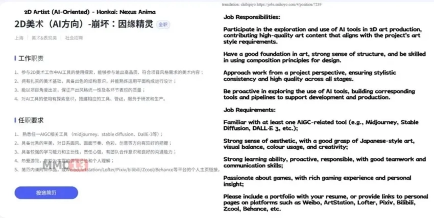 Кроме того, HoYoverse требует быть готовым к изучению и созданию ИИ-инструментов. Видимо, использование нейросетевых технологий планируют вводить на полноценной основе, а не в дополнение к базовой работе.